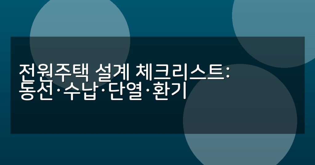 전원주택 설계 시 필수 요소인 동선, 수납, 단열, 환기 체크리스트와 실무 팁을 제공합니다. 효율적 설계와 지원 신청 절차까지 꼼꼼하게 안내합니다.