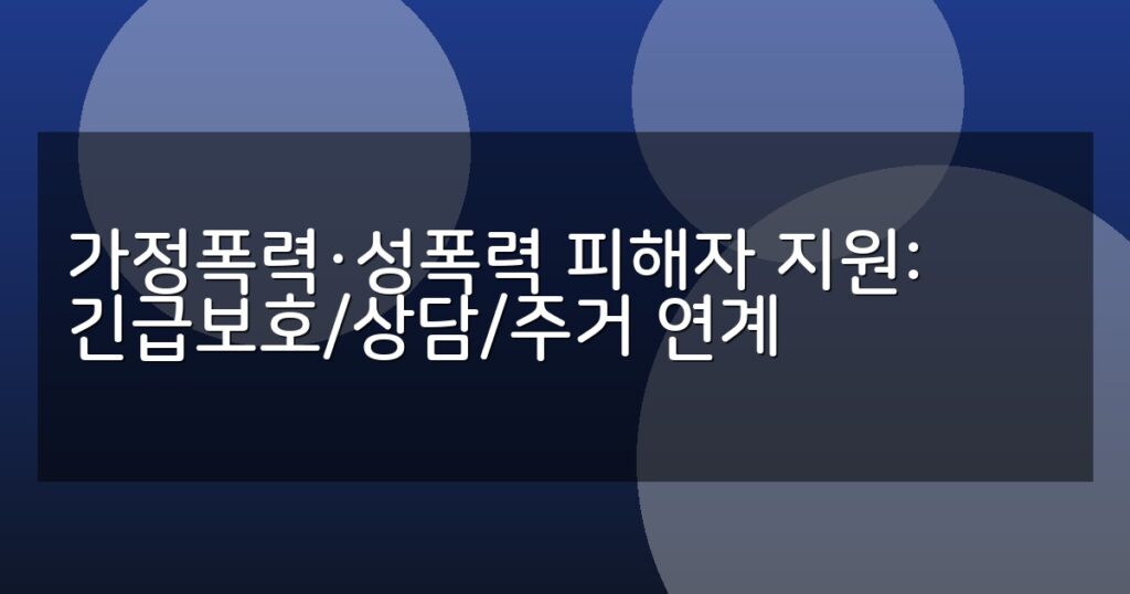 가정폭력·성폭력 피해자를 위한 긴급보호, 상담, 주거 지원 제도와 신청 절차를 상세히 안내합니다. 단계별 지원 내용과 기관별 비교표 제공.