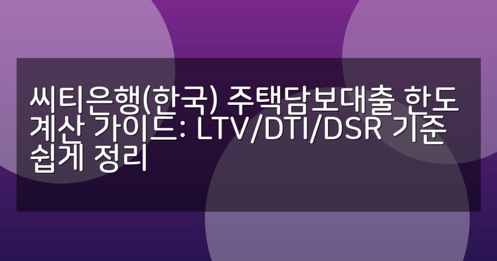 씨티은행 주택담보대출 한도 계산법과 LTV, DTI, DSR 기준을 표와 단계별 가이드로 쉽게 정리했습니다. 신청 절차와 FAQ까지 완벽 안내.