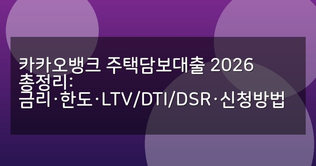 2026년 카카오뱅크 주택담보대출 금리, 한도, LTV·DTI·DSR 규제와 신청 방법을 상세히 안내하는 완벽 가이드입니다.
