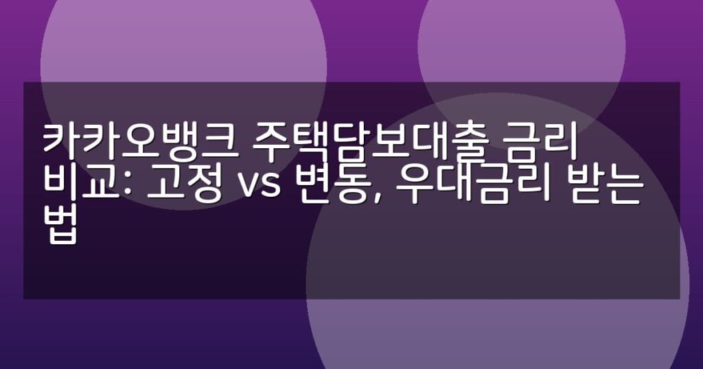 2026년 기준 카카오뱅크 주택담보대출 고정금리와 변동금리 비교와 우대금리 받는 법을 상세히 안내합니다. 대출 신청 절차와 FAQ 포함.