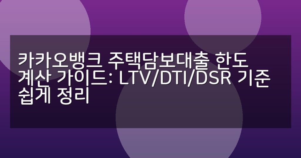 카카오뱅크 주택담보대출 한도 산정 시 LTV, DTI, DSR 기준을 쉽고 자세히 정리했습니다. 신청 절차부터 FAQ까지 완벽 안내합니다.