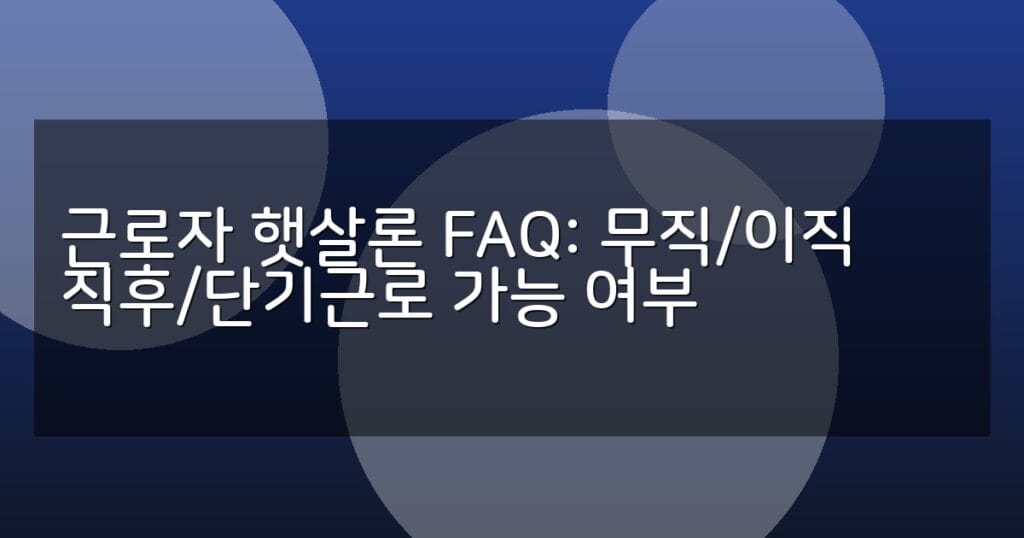 근로자 햇살론 무직·이직 직후·단기근로 신청 FAQ를 상세히 안내합니다. 신청 조건, 절차, 준비 서류 및 자주 묻는 질문까지 한눈에 확인하세요.