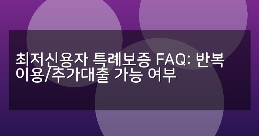 최저신용자 특례보증의 반복 이용 및 추가대출 가능 여부를 실무적으로 안내합니다. 신청 절차와 FAQ까지 상세히 확인해 보세요.