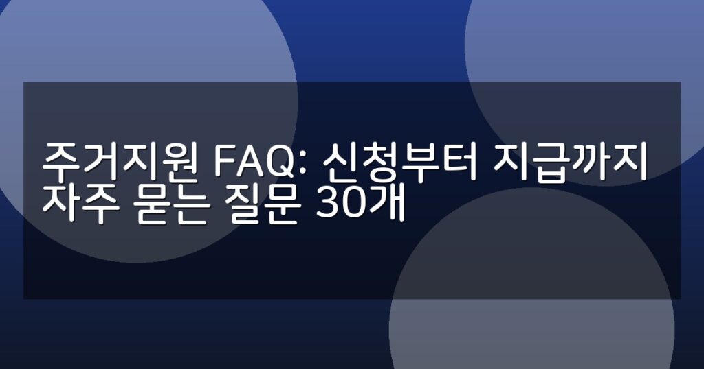 2026년 최신 주거지원 FAQ 30가지를 통해 신청 절차, 자격, 지급 방식 등 핵심 정보를 한눈에 확인하세요. 단계별 안내와 비교표 포함.