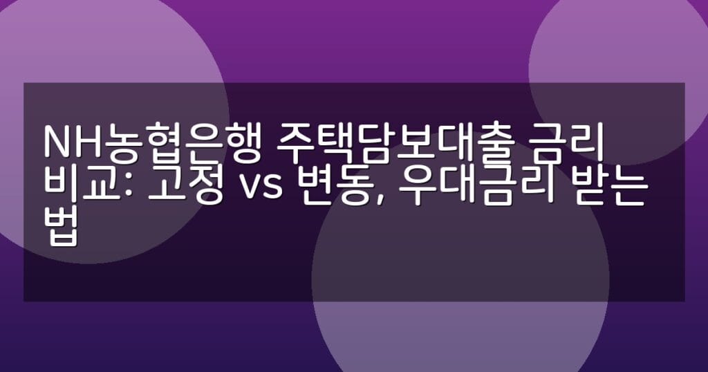 NH농협은행 주택담보대출 고정금리와 변동금리 비교, 최신 금리 현황과 우대금리 적용 방법, 신청 절차 및 FAQ까지 상세 안내합니다.