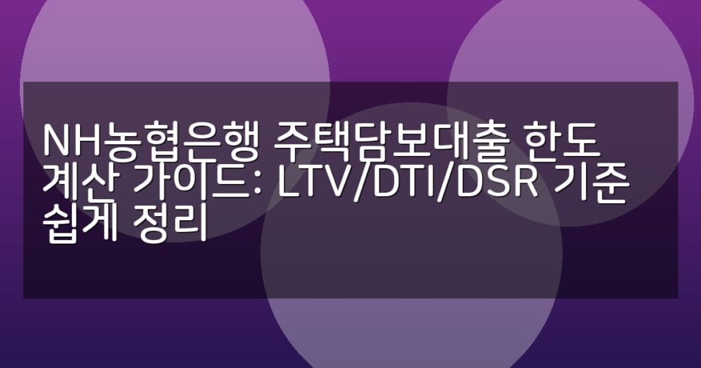 NH농협은행 주택담보대출 한도 계산법을 LTV, DTI, DSR 기준별로 쉽게 정리했습니다. 대출 한도 산정과 신청 절차까지 꼼꼼하게 안내합니다.
