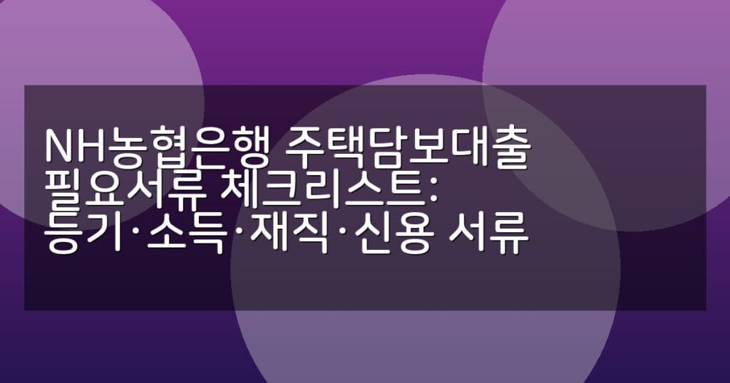 NH농협은행 주택담보대출 신청에 필요한 등기, 소득, 재직, 신용 서류를 상세 체크리스트와 표로 정리해 신속한 준비와 신청을 도와드립니다.
