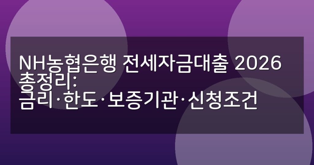 NH농협은행 전세자금대출 2026년 최신 금리, 한도, 보증기관, 신청조건과 절차를 상세히 정리했습니다. 맞춤 대출 비교와 FAQ 포함.