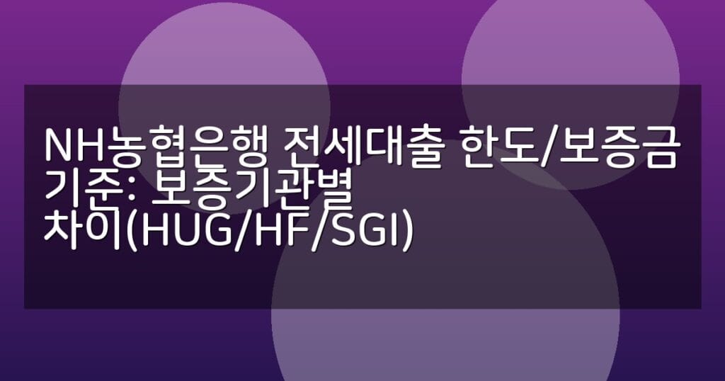 NH농협은행 전세대출 한도 및 보증금 기준을 HUG, HF, SGI 보증기관별로 비교 분석합니다. 신청 절차와 유의사항, FAQ까지 2026년 최신 정보 제공.