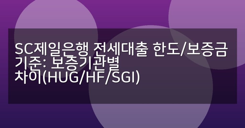 SC제일은행 전세대출 한도와 보증금 기준을 HUG, HF, SGI 보증기관별로 비교 분석합니다. 신청 절차와 유의사항, FAQ까지 꼼꼼하게 안내드립니다.